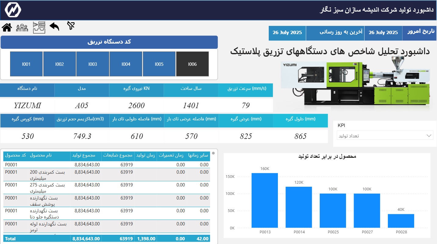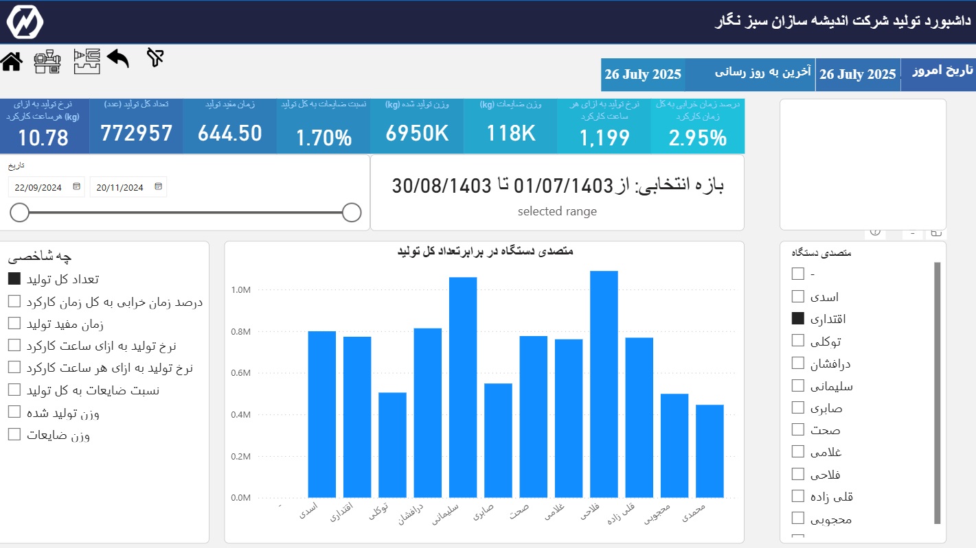 - دید جامع و شفاف از عملکرد: مدیران اکنون یک تصویر کامل و لحظهای از وضعیت تولید، شناسایی گلوگاهها و فرصتهای بهینهسازی در اختیار دارند.